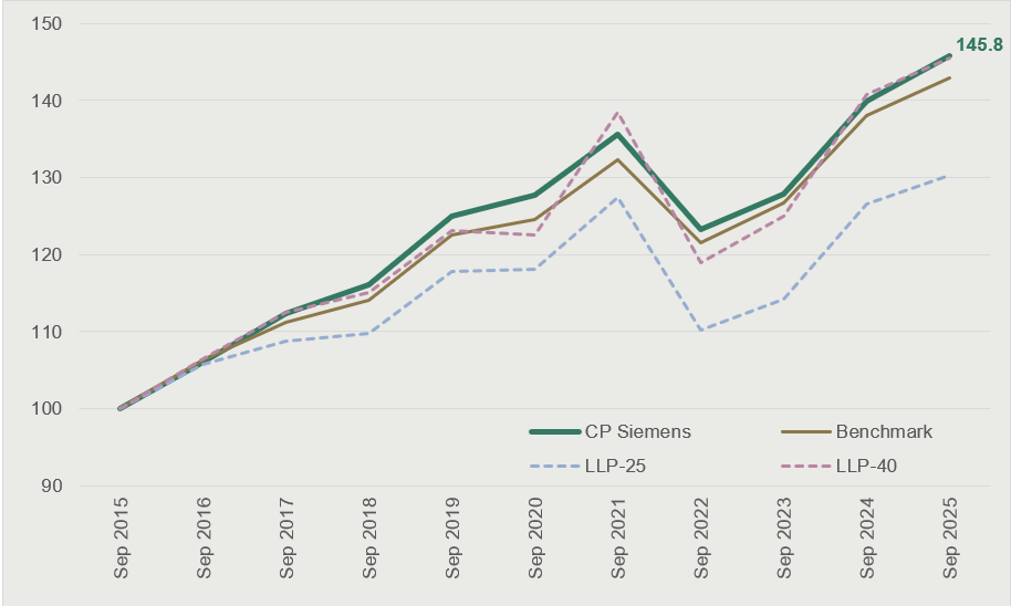Performance indexée sur les 10 dernières années